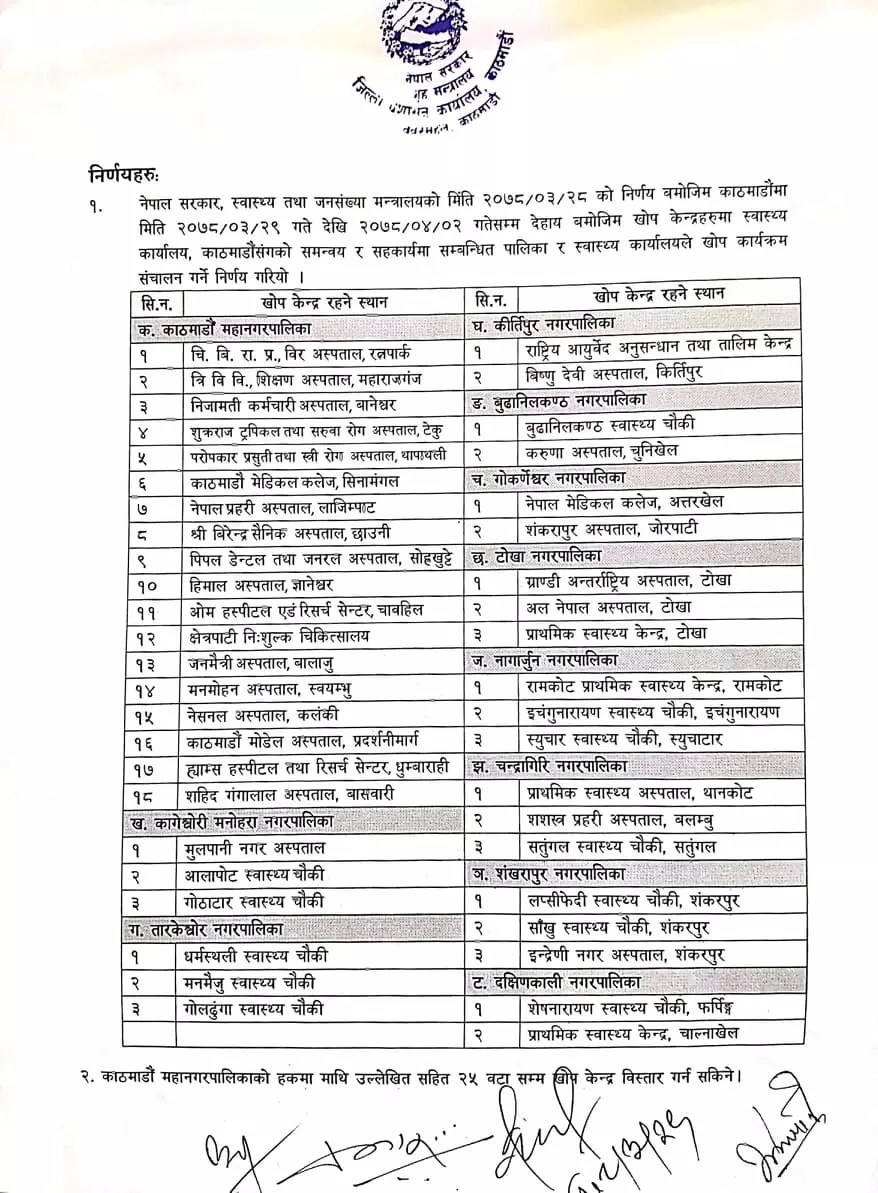 काठमाडौँ, २९ असार – काठमाडौंमा साउन ४ देखि ६ सम्म कोरोनाविरुद्धको जोन्सन एण्ड जोन्सन खोप लगाइने भएको छ। भेरोसेल खोप भने आजदेखि साउन २ सम्म लगाइने छ। दुवै खोपका लागि खोप केन्द्रहरु भने एउटै हुने जनाइएको छ ।