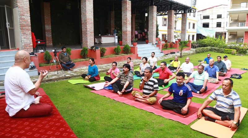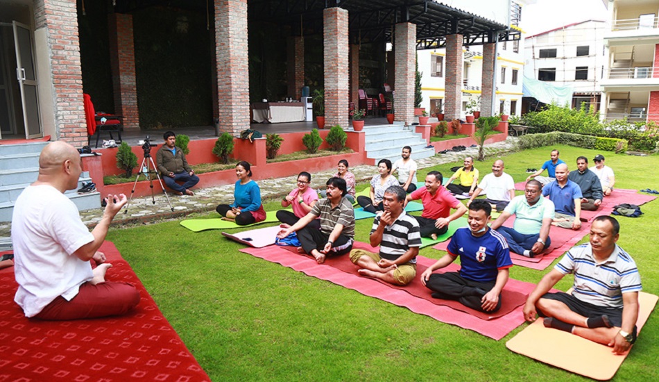 ‘गरौँ योग, रहौँ निरोग : मन र शरीरलाई शुद्ध गरौँ’ भन्ने मूलनाराका साथ बौद्ध गुरु रानाग टुल्कु रिन्छेन रिम्पोछेले बौद्धस्थित सिद्धार्थ होटलमा २० फोटो पत्रकारलाई एक घण्टाको योग अभ्यास सिकाउनुभएको समूहका महासचिव प्रदीपराज वन्तले बताउनुभयो ।