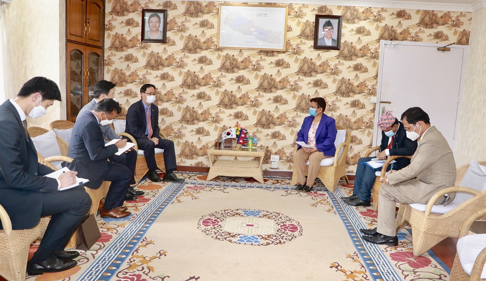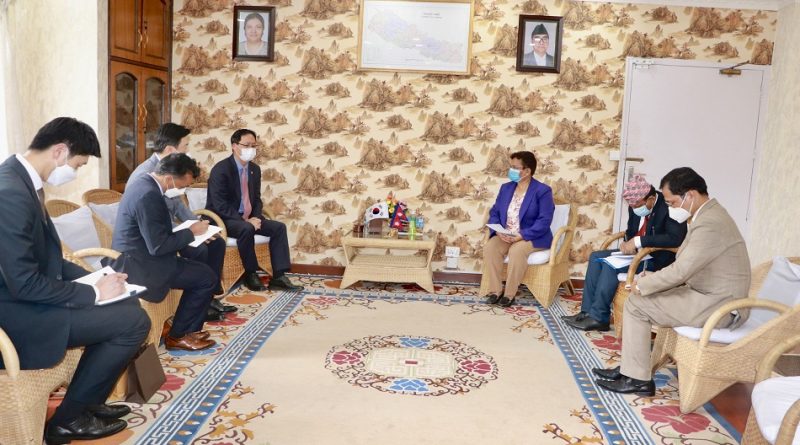 काठमाडौँ, १८ साउन – ऊर्जा, जलस्रोत तथा सिँचाइमन्त्री पम्फा भुसालसँग नेपालका लागि गणतन्त्र कोरियाका राजदूत पार्क चोङ–सुकले आज शिष्टाचार भेट गर्नुभएको छ । ऊर्जा मन्त्रालयमा भएको भेटमा उहाँहरूबीच नेपाल–कोरियाको आपसी चासो र सहयोगका विषयमा विचार विमर्श भएको थियो । सो अवसरमा मन्त्री भुसालले दुई देशबीच रहिआएको असल सम्बन्ध आगामी दिनमा अझै सुदृढ हुने विश्वास व्यक्त गर्नुभयो ।