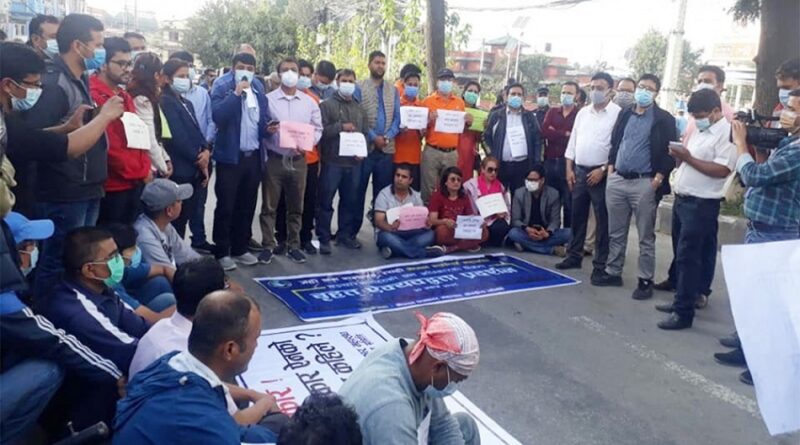 नेपाल पत्रकार महासंघको अगुवाईमा पत्रकारहरुको माइतीघर मण्डलामा प्रदर्शन