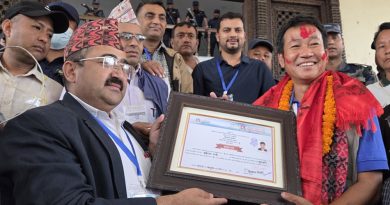 चितवन, १४ मङ्सिर – नेकपा (एमाले) का नवनिर्वाचित अध्यक्ष केपी शर्मा ओलीले आज पद तथा गोपनीयताको सपथ लिनुभएको छ । सो पार्टीको दशौँ राष्ट्रिय महाधिवेशनले फराकिलो मतान्तरसहित अध्यक्षमा पुन ः केपी शर्मा ओलीलाई निर्वाचित गरेको थियो । बन्दसत्रमा केन्द्रीय निर्वाचन आयोगका अध्यक्ष डा विजय सुब्बाले नवर्विाचित अध्यक्ष ओलीलाई सो पदको सपथ गराउनुभयो ।
