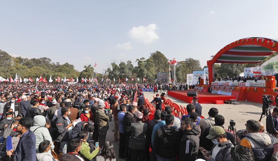 नेपाली कांग्रेसको १४औं महाधिवेशनको उद्घाटनस्थल भृकुटीमण्डपमा भेला हुने क्रम जारी