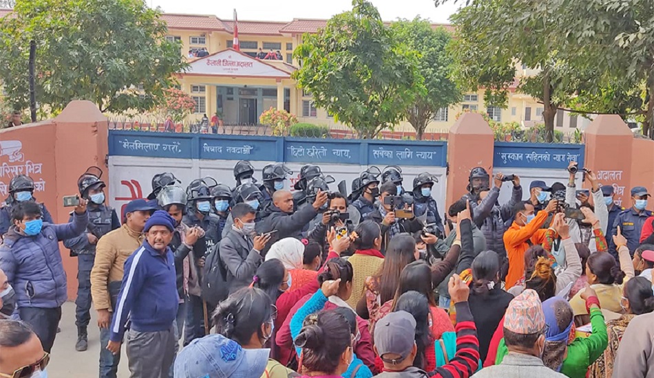 भूपेन्द्र बडुवालकाे हत्यामा संलग्नलाई धराैटीमा रिहा गरेकाे भन्दै आफन्त र परिवारजनले जिल्ला अदालतबाहिर प्रदर्शन