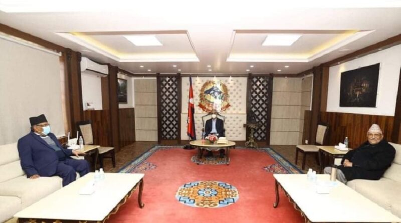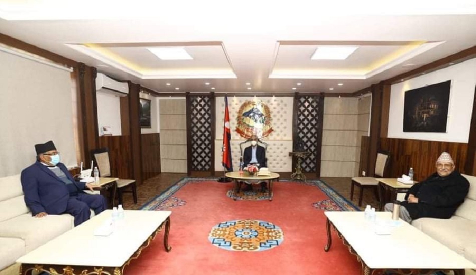 बालुवाटारमा प्रधानमन्त्री देउवा ,ओली र प्रचण्डबीच बैठक सुरु