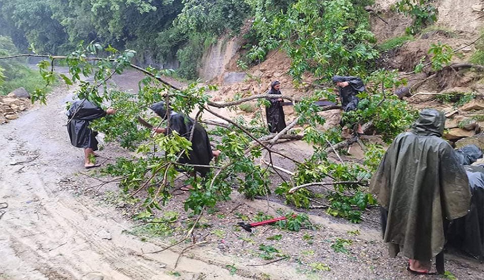 दाङको लमही–घोराही सडकखण्ड पहिरोले पुनः अवरुद्ध