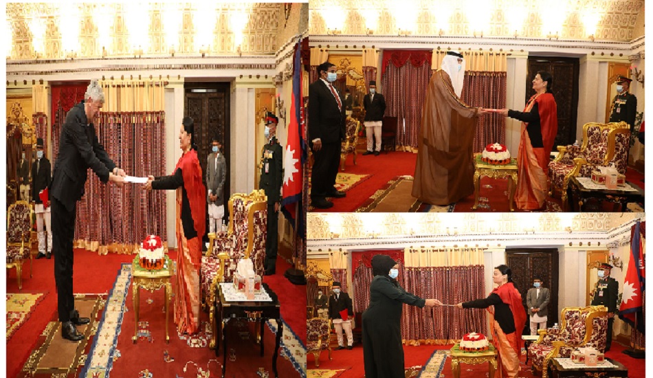 तीन देशका राजदूतले राष्ट्रपति भण्डारी समक्ष ओहदाको प्रमाणपत्र बुझाए