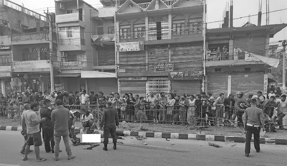 प्रदेश १–०५–००१ प ६१५९ नम्बरको मोटरसाइकलमा सवार मगरलाई मे १ ख २१८४ नम्बरको ट्रकले ठक्कर दिएको थियो । ट्रक चालक, ट्रक र मोटरसाइकललाई प्रहरीले नियन्त्रणमा लिएको छ ।