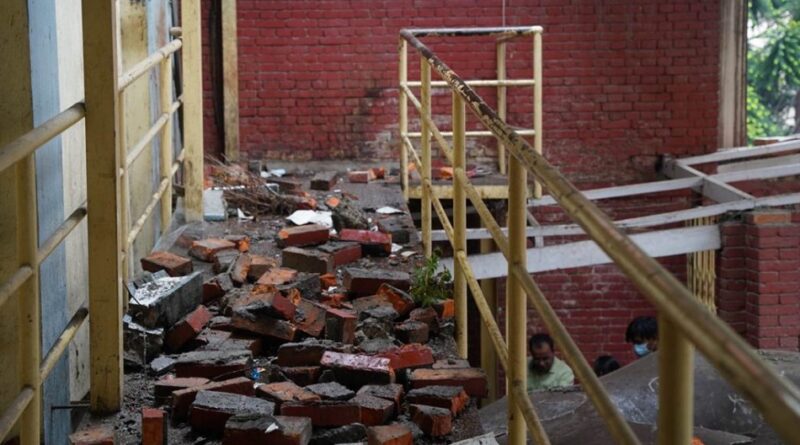 वीर अस्पतालको पुरानो भवनको छतको वाल भत्किँदा चार जना बिरामीका कुरुवा घाइते