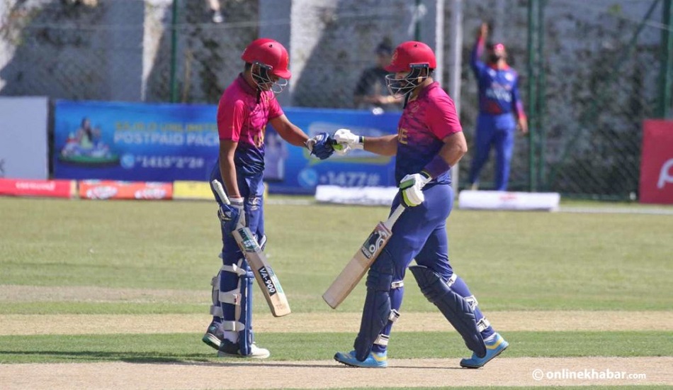 दीपेन्द्रसिंह ऐरीले १५ बलमा १ चौका र १ छक्काको मद्दतमा २० रन जोड्दै आउट भए । कप्तान रोहितकुमार पौडेल १७ बलमा १ चौकासहित १८ रन जोड्दै आउट भए । त्यस्तै आसिफ शेख ७ रनमा आउट भए ।