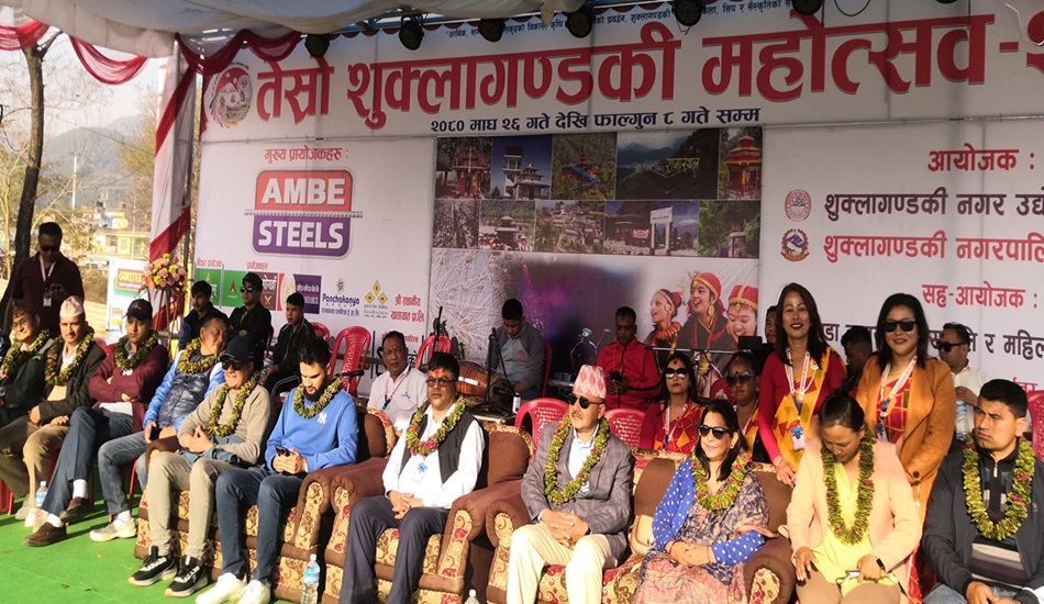 तनहुँ, ६ फागुन – तनहुँको शुक्लागण्डकी नगरपालिका–५ बेलचौतारामा जारी तेस्रो शुक्लागण्डकी महोत्सवमा स्थानीय उत्पादनलाई प्राथमिकता दिइएको छ । महोत्सवमा खादा र ब्याचको सट्टामा स्थानीय उत्पादनलाई प्राथमिकता दिइएको हो । यसअघिका महोत्सवमा नगर र जिल्ला बाहिरबाट माला खरिद गरी ल्याउने गरिएकामा यसपटक समिको पातबाट बनाइएको माला र स्थानीय फूल प्रयोगमा ल्याइएको हो ।