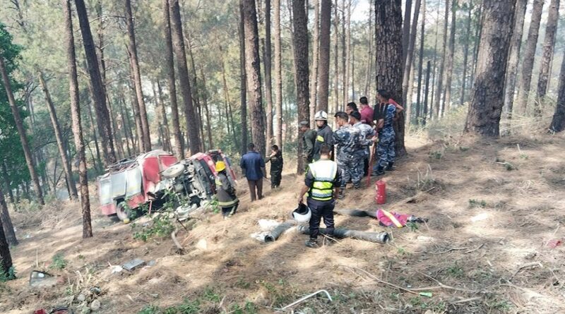 चोभार डाँडामा भएको आगलागी निभाउन गएको दमकल दुर्घटना हुँदा ६ जना घाइते