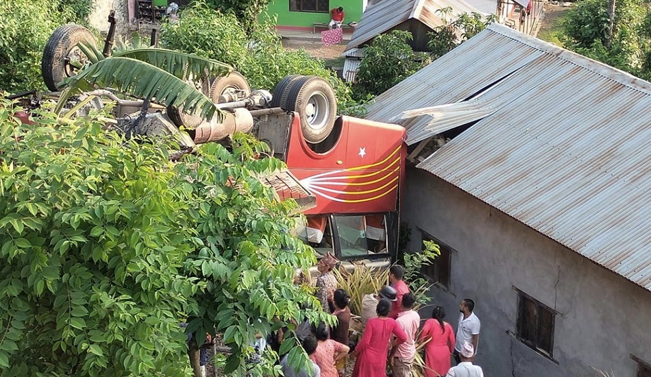 बर्दिबासबाट काठमाडौँ हिँडेको बस सिन्धुलीमा दुर्घटना