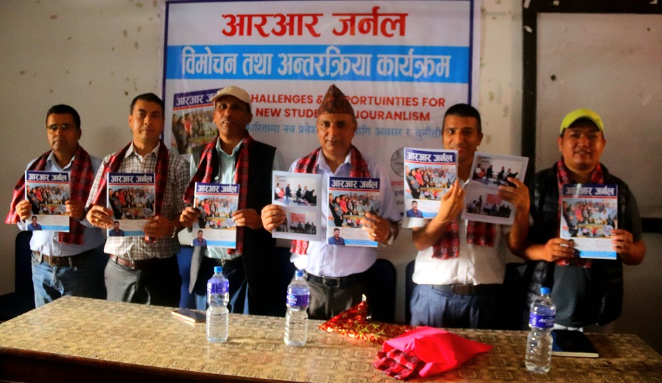 त्रिभुवन विश्वविद्यालय रत्नराज्यलक्ष्मी क्याम्पसको पत्रकारिता विभागले आज यहाँ आयोजना गरेको ‘आरआर जर्नल’ विमोचन तथा अन्तक्र्रियामा क्याम्पस प्रमुख प्रा डा जीवनधर ज्ञवालीले आरआर क्याम्पस पत्रकारिता प्रशिक्षणको प्रमुख केन्द्र भएको बताउँदै सञ्चार क्षेत्रमा पनि विकृति, विसङ्गति विद्यमान रहेकाले त्यसको अन्त्य पत्रकारहरूले नै गर्नुपर्नेमा जोड दिनुभयो ।