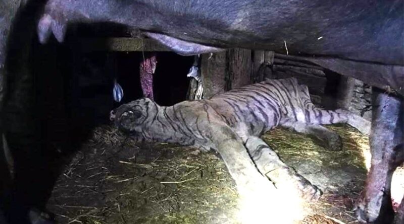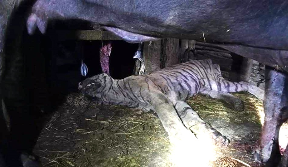 मनहरी गाउँपालिकामा भैंसी गोठभित्र बाघ मृत फेला