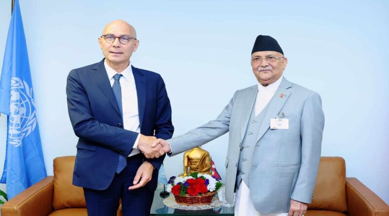न्युयोर्क (अमेरिका) ७ असोज – संयुक्त राष्ट्रसङ्घको ७९औँ महासभामा नेपाली प्रतिधिमण्डलको नेतृत्व गर्दै संयुक्त राज्य अमेरिकाको न्युयोर्कमा रहनुभएका प्रधानमन्त्री केपी शर्मा ओेलीसँग राष्ट्रसङ्घका मानव अधिकार उच्चायुक्त भोल्कर टर्कले आज शिष्टाचार भेट गर्नुभएको छ ।