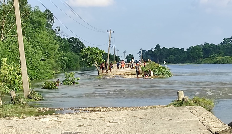 सप्तरी, १५ असोज – केही दिनअघिको अविरल वर्षाका कारण जीता खोलाको आएको बाढीले राजविराज–कुनौली सडकखण्डमा रहेका पुल भासिदा आवतजावतमा समस्या भएको छ । साथै भारतसंग जिल्लालाई जोड्ने प्रमुख सो सडक वर्षाले पूर्ण रूपमा अवरुद्ध भएको छ । यसबाट तिलाठी कोइलाडी गाउँपालिका–१ तिलाठीस्थित राजविराज भन्सार कार्यालयको राजश्व सङ्कलनमा प्रभावित समेत भएको छ । अहिले सो सडक र भासिएको पुलबाट पानी बगिरहेको छ ।