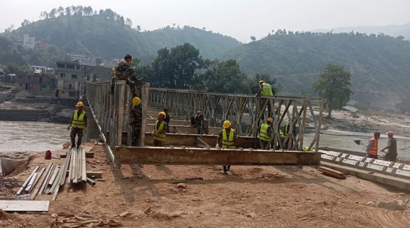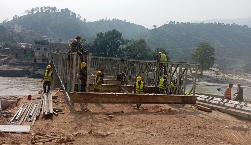 काठमाडौँ, ३ कात्तिक – रामेछाप र सिन्धुली जोड्ने प्रमुख नाकाका रुपमा रहेको खुर्कोटको पुल निर्माणलाई नेपाली सेनाले तीव्रता दिएको छ । सेनाले बेलिब्रिजको काम तीव्र रुपमा गरेसँगै रामेछापतर्फको भाग भने बुधबार साँझ नै जोडिएको थियो ।