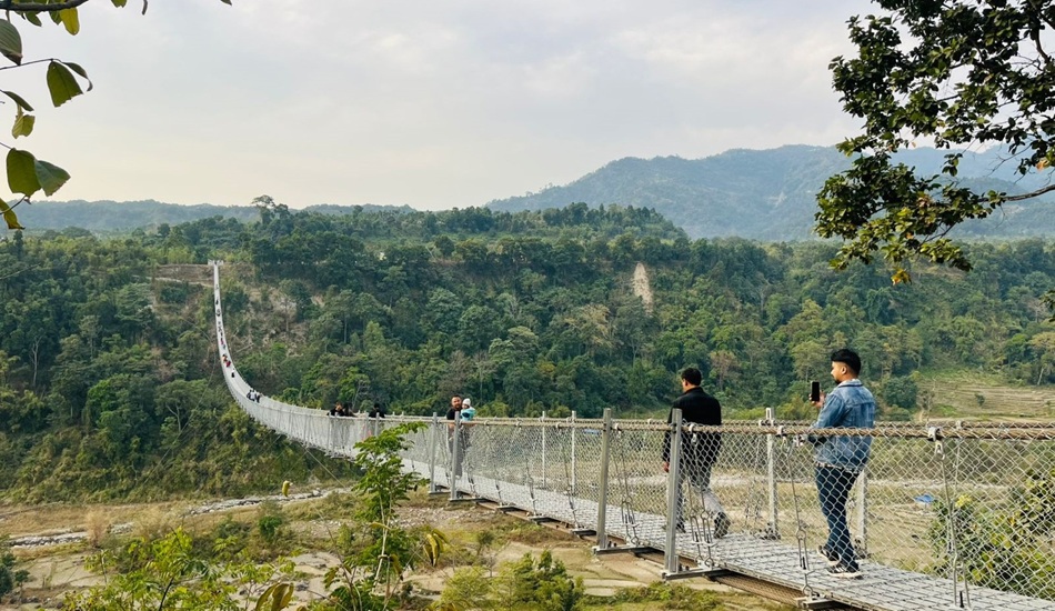 यो दृश्य झापाको बुद्धशान्ति गाउँपालिकाको टिमाई नदीमा नवनिर्मित झोलुङ्गे पुलको हो । जहाँ पुल हेर्ने पर्यटकको घुइँचो लागेको छ । पूर्वी नेपालको विभिन्न जिल्ला र भारतको सिक्किम तथा पश्चिम बङ्गालबाट समेत उक्त पुल हेर्न पर्यटक आउने गरेका छन् ।