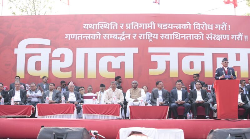 माओवादी केन्द्रका उपाध्यक्ष पम्फा भुसालले सार्वभौम अधिकारप्राप्त आमनागरिक कोही पनि राजतन्त्रको पक्षमा नरहेको बताउनुभयो । आमसभाअघि समाजवादी मोर्चाले काठमाडौँको विभिन्न स्थानबाट जुलुस निकालेको थियो ।