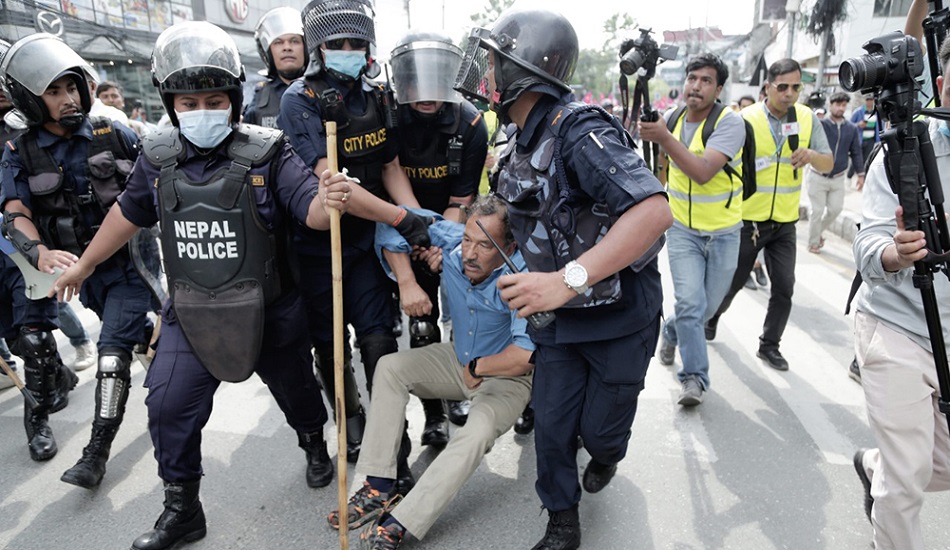 राप्रपा नेपालका अध्यक्ष कमल थापालाई प्रहरीले लछारपछार पार्दै नियन्त्रणमा लिए