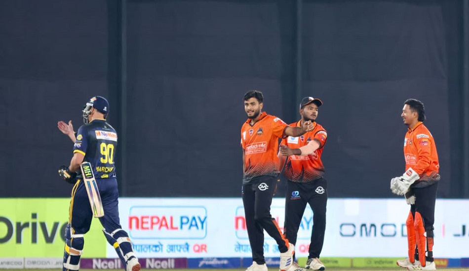 चितवनका रन्जित कुमारले ४ ओभरमा २१ रन खर्चेर ५ विकेट लिए र यस सिजन एक खेलमै पाँच विकेट लिने पहिलो बलर बने। कमल सिंह ऐरीले २ विकेट लिए भने सोहेल तनविर, सैफ जैब र कप्तान कुशल मल्लले एक–एक विकेट दर्ता गरे।