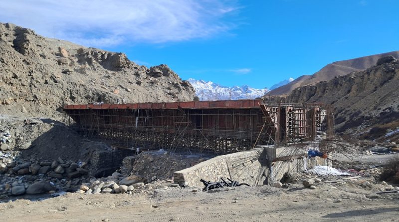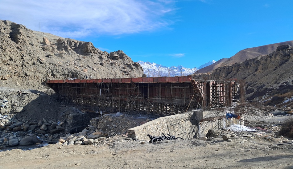 मुस्ताङ, ९ पुस – नेपाल–चीन सीमा नाका कोरला जोड्ने माथिल्लो मुस्ताङको लोघेकर दामोदरकुण्ड गाउँपालिका–२ स्थित घमी खोलामा निर्माणाधीन पुल अन्तिम चरणमा पुगेको छ । कालीगण्डकी करिडोर (बेनी–जोमसोम–कोरला) सडक आयोजनाअन्तर्गत निर्माण भइरहेको उक्त पुलको भौतिक प्रगति करिब ८० प्रतिशत पुगेको र चालु आर्थिक वर्षभित्रै सम्पन्न गर्ने लक्ष्यका साथ काम भइरहेको आयोजनाले जनाएको छ ।