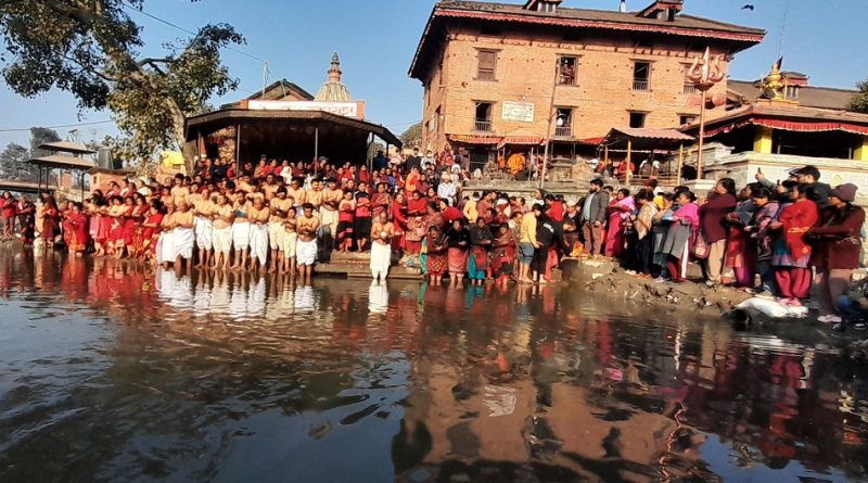 नेसं ७२२ मा राजा रणजित मल्लले स्वयं व्रतको व्यवस्थापन गरेको शिलालेखमा उल्लेख रहेको बताउँदै पुजारी शर्माले त्रिवेणीघाटमा डुबुल्की मारी एकचित्त भएर मागिएको इच्छा पूरा हुने जनविश्वासका कारण यहाँ व्रत बस्ने र स्नान गर्न आउनेको संख्या बढेको उल्लेख गर्नुभयो ।