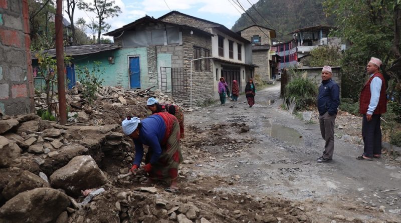 म्याग्दी, ९ चैत – मालिका गाउँपालिका–६ दरवाङका बासिन्दाले सडक विस्तारका लागि स्वस्फूर्त रूपमा घरका पेटी र टहरा भत्काउन थालेका छन्। गाउँपालिकाको केन्द्रसमेत रहेको दरवाङ बजारमा सडक फराकिलो बनाउने र कालोपत्र गर्ने योजनालाई सहयोग गर्न स्थानीयले आफ्नै संरचना हटाउन थालेका हुन्। वडाध्यक्ष पथबहादुर रोकाका अनुसार वडा कार्यालयदेखि बिमतर्फ जाने साँघुरो सडकलाई छ मिटर चौडा बनाउन घरधनीहरू स्वयं अग्रसर भएका छन्।